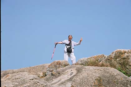 爬了雞足山,隔天仍分乘六部吉普車去朝拜 "目健蓮尊者涅槃處",這也是要爬山,其山路並不比雞足山好走,但我仍沒問題,跟著大家爬到山頂並在目健蓮尊者涅槃處作法會,作完法會,老師又帶一些人去攻旁邊的本山山頭。為了保留體力,我則留下來聽領隊玲師姊講她出家不成反成家的故事,其因緣也是不可思議!