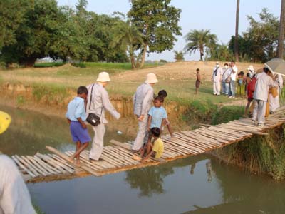 下午行程先去拜訪緬甸寺,然後到牧羊女紀念塔和苦行林朝拜,遊覽車先停在尼羅禪河邊,大夥再下車走田埂路到牧羊女紀念塔和苦行林世尊苦修處,路途遙遠,中途還穿過一個村落,簡陋的屋子外牆上貼滿了牛糞餅,曬乾了便是他們的燃料。我跟著隊伍走,雖然中途沒怎麼休息,但依然跟得上隊伍且背也不痛,回到車上只覺腳底很酸。晚餐後再到大覺寺繞塔,一整天下來,仍沒有疲倦感,讓我深感意外。