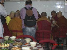 本來預計全部授戒僧團成員來台灣寺受供養,但因大部份大德僧事忙,所以只有六位授戒師等一同於台灣寺廟受供。因我剛斷食完,所以不能吃,僅陪他們喝點湯。下午,教授師約好又要來教學,把戒律大概交待一下,要我回去自我學習。