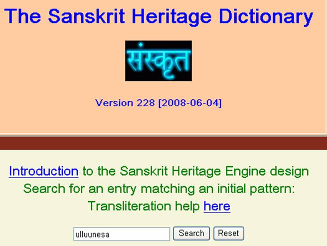 使用The Sanskrit Heritage Dictionary(梵法字典)「index」查「ull9nesa」字,