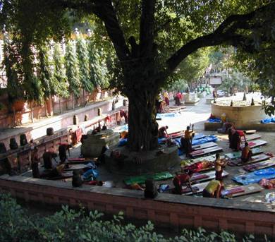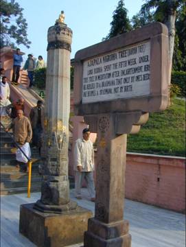 在十八世纪的时候,在原来的菩提树东侧,这个菩提树是讲原来的,现在盖起来就看不到,东侧就是菩提树正对面,它是往东,又一印度教毘湿笯派也建立一个寺庙在那边,刚刚所讲的有两个寺庙,小小的不是很大,聚集大量僧众居住修行。