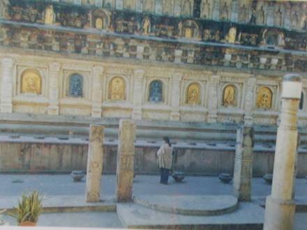 在印度诸多异教徒的争战中,大塔亦于公元七世纪初被毁坏,是阿育王那时候所建的,就被毁坏掉一次。在公元十二、三世纪时,缅甸国王又跑来把它整修,把大塔及精舍弄得更大一点,但不久就在这个时间,回教徒开始成立了,大概成立在第五、第六世纪左右,经过五、六百年以后壮大了,就开始弘扬进入印度,在这时