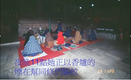 于此廿八天中,因大部份睡于大塔里,每晚陪伴着世尊,做些修行、打坐、打盹、偷睡、…等事,经历了人生难得经验,此次禅修时有关安全问题、睡觉问题、疾病问题、…等等,绝无仅有的,我们得了历史性的经验。