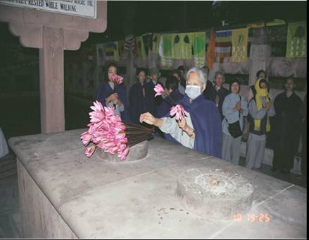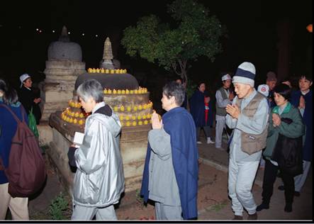 供烛代表佛光照亮大地、照耀十方三世恶道众生。供烛也代表行般若波罗蜜,用般若智照破一切烦恼,度到彼岸。我们辛苦地从台湾携带六百颗品质很好的蜡烛至印度,代表我们供佛的虔诚心意。