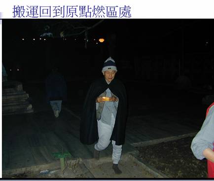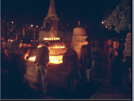 正当大家虔诚地绕烛光佛塔时,大塔的管理员忽然出现,说不能于此地塔上点蜡烛,所以我们又把火烛搬去可以点火的地区。