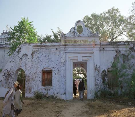 尼连禅河有水时的景况,右边是苦行林与苏嘉达村