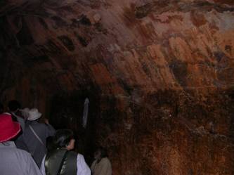 右壁上白光处是洞门据言可通达另一边的七叶窟