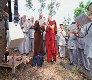 如是两尊者一说法、一现神通,连续三次,这五百年轻比丘始知真是受骗。舍利弗尊者、目犍连尊者起立要回去了,五百大众亦起立跟着回僧团去。此事调达尊者破僧仅一宿而已,第二天世尊见此五百众,未加以呵责,还是继续接受他们入僧团中,所以说:王舍大城僧分别,如来善化行慈悲。