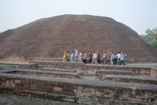 宝冠支提佛陀荼毘火化处记念塔有比丘绕塔