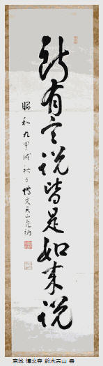铃木天山禅师是日本曹洞宗大本山永平寺六十九世贯首(住持),之前曾被派驻朝鲜京城之博文寺,做第一世住持。当此时他曾写下墨宝:「所有言説 皆是如来説」留传后世。后曹洞宗门人做祖师传记者,不知其所依为何,所以说「出典は不明」,不知所言出自佛之何典籍。今将有此一说之经典之一,列出供参阅。