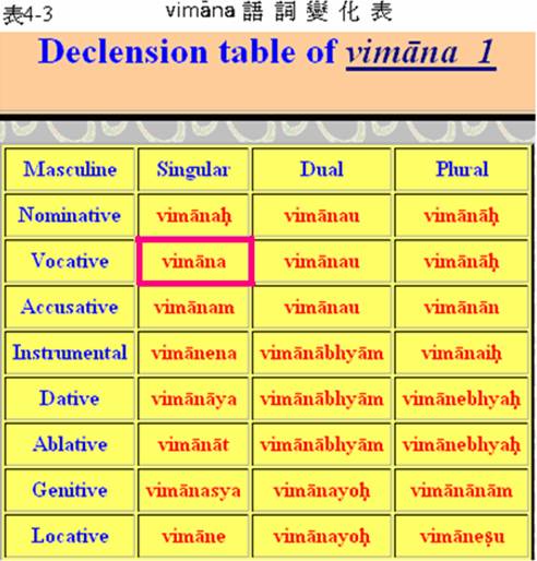 (五)摩诃mah2为常用字无争议,大的意思。Mah的现在分词是mahat,形容词具格为mah2如表4-5所示。