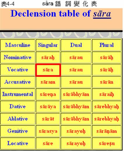 3.s2ra的词性为阳性、单数、呼格如表4-4所示
