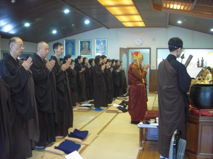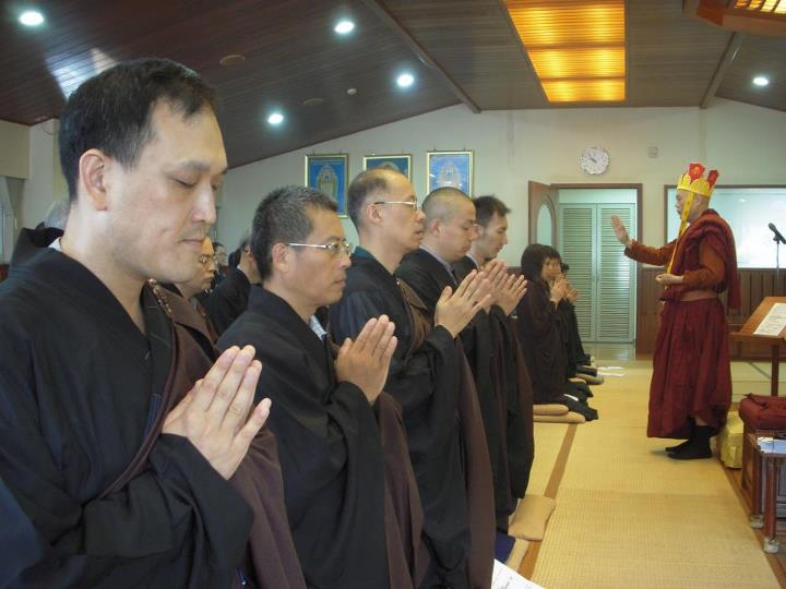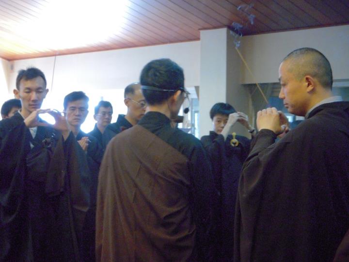 书归正传,传戒当日,法会很隆重殊胜。以前除了受五戒、菩萨戒时参加过法会,就没再体验过了。清晨起来沐浴更衣,再穿上海青缦衣,长袖长衣,活动不便,于是一下子感觉稳重很多,以至于后来台中后里的谢师兄见到我说,网络图片上我看起来庄严,这句话差点让我晕倒,我说那是装出来的严,实际上感觉是不习惯啦。