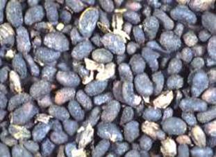 为豆科植物补骨脂的成实果实,属植物补骨脂Psoralea corylifolia L., 系豆科植物补骨脂的干燥成熟的果实,又名黑故子、胡故子、破故纸、婆固脂、黑胡纸、胡韭子。一年生草本,高40~90cm,全株被黄白色毛、黑色或黑褐色腺点。茎直立,枝坚硬,具纵棱。叶互生,多为单叶,仅枝端常侧生小叶;叶片阔卵形至三角状卵形,长4~9cm,宽3~6cm,先端钝或圆,基部圆或心形,边缘有不整齐的锯齿。花多数,密集成近头状的总状花序,腋生;花冠蝶形,淡紫色或白色,花期7~8月,果期9~11月。秋季果实成熟时割取果穗,晒干,打下果实。