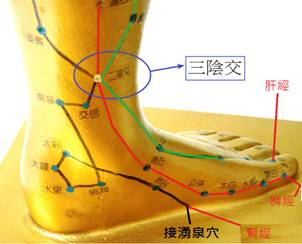(3)              双手的拇指及中指按住双脚的第三趾(中趾)