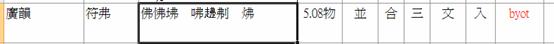 另外,秽迹金刚咒有正式出书的大德,把「咈咶p1va」翻成bhibho guru石丢 么冰,这些字的意义与声音都是无解的,详如下图所示。bhibho这个字词第五句男声气音bhi再接自己第五句男声气音bho的组合,这种组合字形念法方式是不合乎声韵学的,所以字典查不到此种字词是必然的。而「咈咶」不可能是翻成「怖畏上师」,虽bhi有恐怖义,而bho则无解,两字亦不能连成一连词,因发音上同是第五句门,发音上有困难,此种字词是很少的。而福慧寺长老所传此咒─咈咶还是念成p1va必滑。连音发音等技巧,可详法尔网站悉昙字词组合之大篇幅说明。